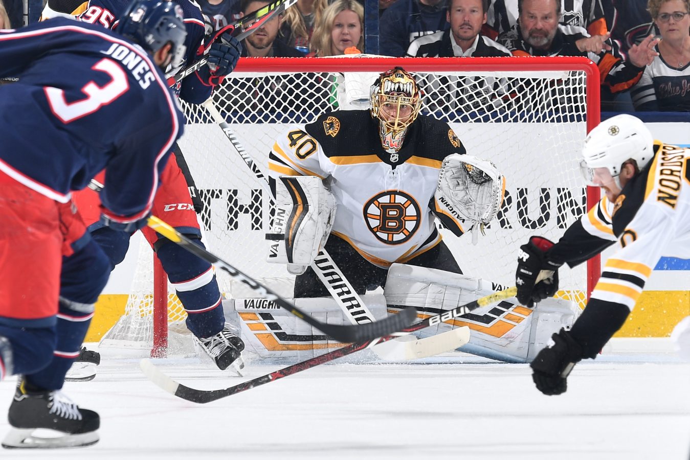 Columbus’ 40 shots aren’t the most Rask has faced this season or even just this post-season, but he faced an absolute barrage of shots from the slot, as Columbus did everything it could to claw its way back. They even had a penalty shot but Boone Jenner couldn’t convert.